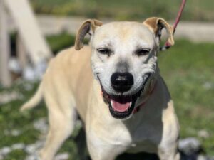 Today he is a happy, social, and friendly dog who loves cuddles, playtime, and human company. He has his own unique way of communicating: he doesn’t hear well and makes sounds that might be mistaken for growling, but if you understand him, he will melt your heart.