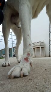 Big Ira is a wonderful half-breed German Shepherd who was found abandoned in Apeiranthos. For years she lived in intense pain from severe otitis. She underwent surgery and her right ear was completely removed, while the left is undergoing treatment. The tests showed cancer and the truth is we don’t know how much time she has left. She receives daily treatment and must be examined frequently to monitor the progress of her health.
